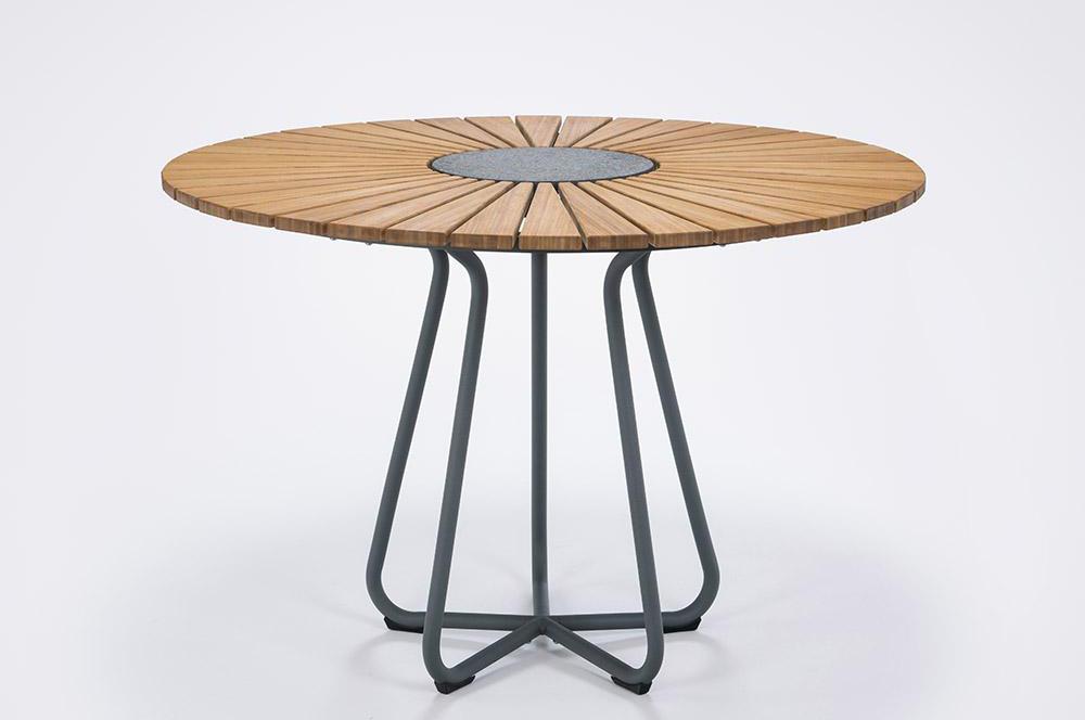 The CIRCLE table with bamboo and granite top comes with gray powder-coated aluminum legs. A beautiful and well-proportioned dining table for your garden that enables free seating as the leg construction is drawn in under the table to provide comfortable legroom. CIRCLE easily seats 6 people around the table (or 8-10 around the larger size).