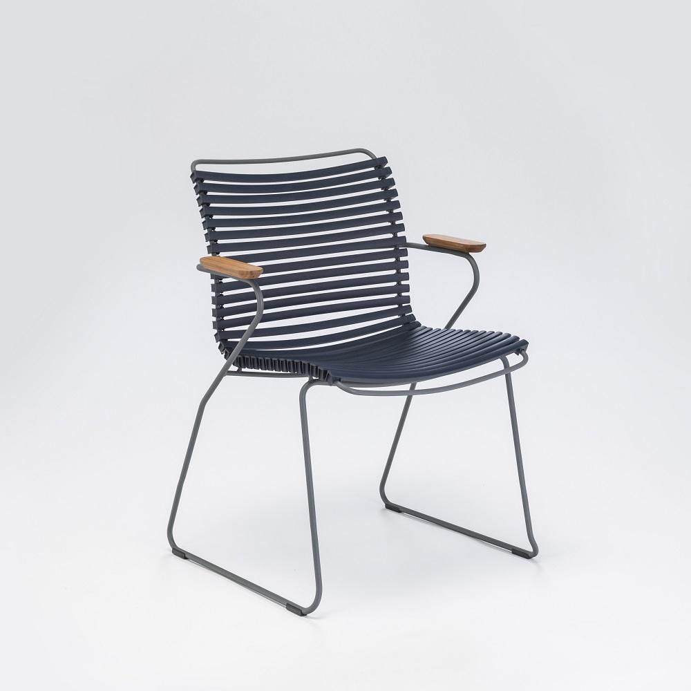 CLICK is a collection of outdoor furniture made in intelligently designed plastic lamellas combined with powder-coated metal and beautiful bamboo parts. The components are carefully composed to give the lamellas exactly the right strength and resilience to provide excellent cushion-free comfort. Available armless, too!